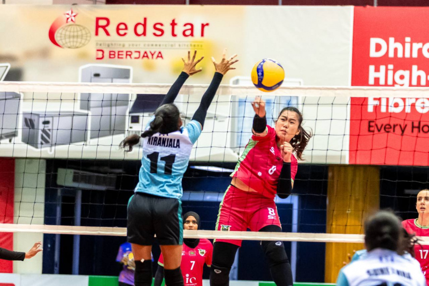 ކާވާ ވިމެންސް ލީގުގައި ރާއްޖޭގެ ކުލަބު ވެމްކޯ އާއި ލަންކާގެ ހިރްދަރަމާނީ ބައްދަލުކުރި މެޗުގެ ތެރެއިން--- ފޮޓޯ: ސަން