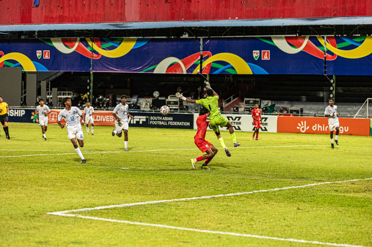 ސާފް 20 އަހަރުންދަށުގެ މުބާރާތުގައި ރާއްޖެއާ ލަންކާ ބައްދަލުކުރި މެޗުގެ ތެރެއިން-- ސަން ފޮޓޯ: ޝާތިއު